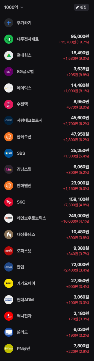 매일 1000억 거래대금과 상한가 종목을 정리하고 이중 급등 후 눌림목 자리, 돌파 자리에서 매수하여 다음날 오전이나 스윙으로 넘어가는 것을 관리기록하기 위하여 글을 정리합니다.