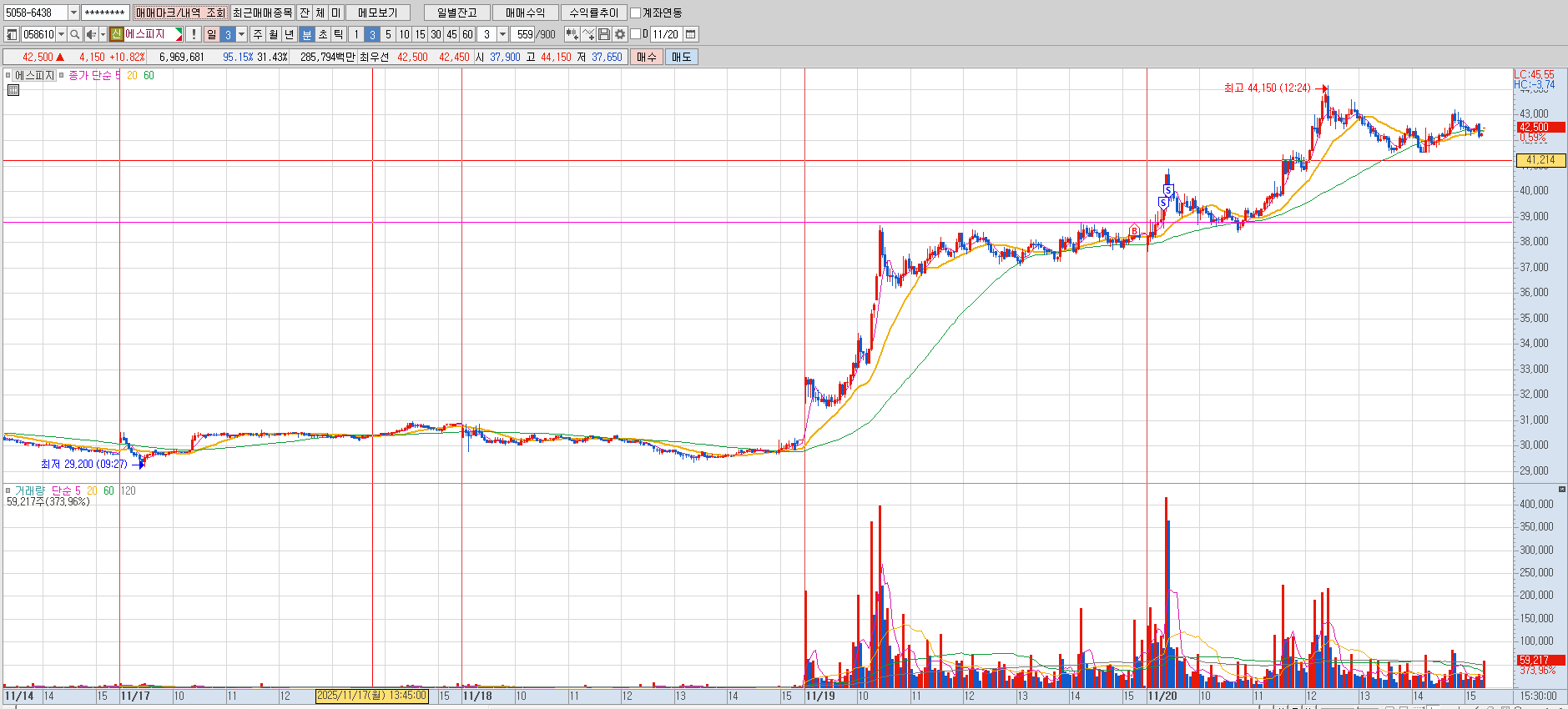 에스피지 : 당일 주도주로 오전에 들어온 물량이 유지가 되어 종가배팅으로 매수