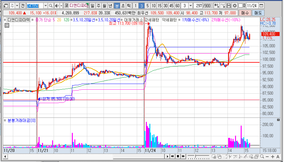 3. 차트상 자리가 신고가, 돌파 자리인가.(분봉상 장 후반까지 올리는 차트에 대해서는 추적 관찰을 해봐야겠다. )