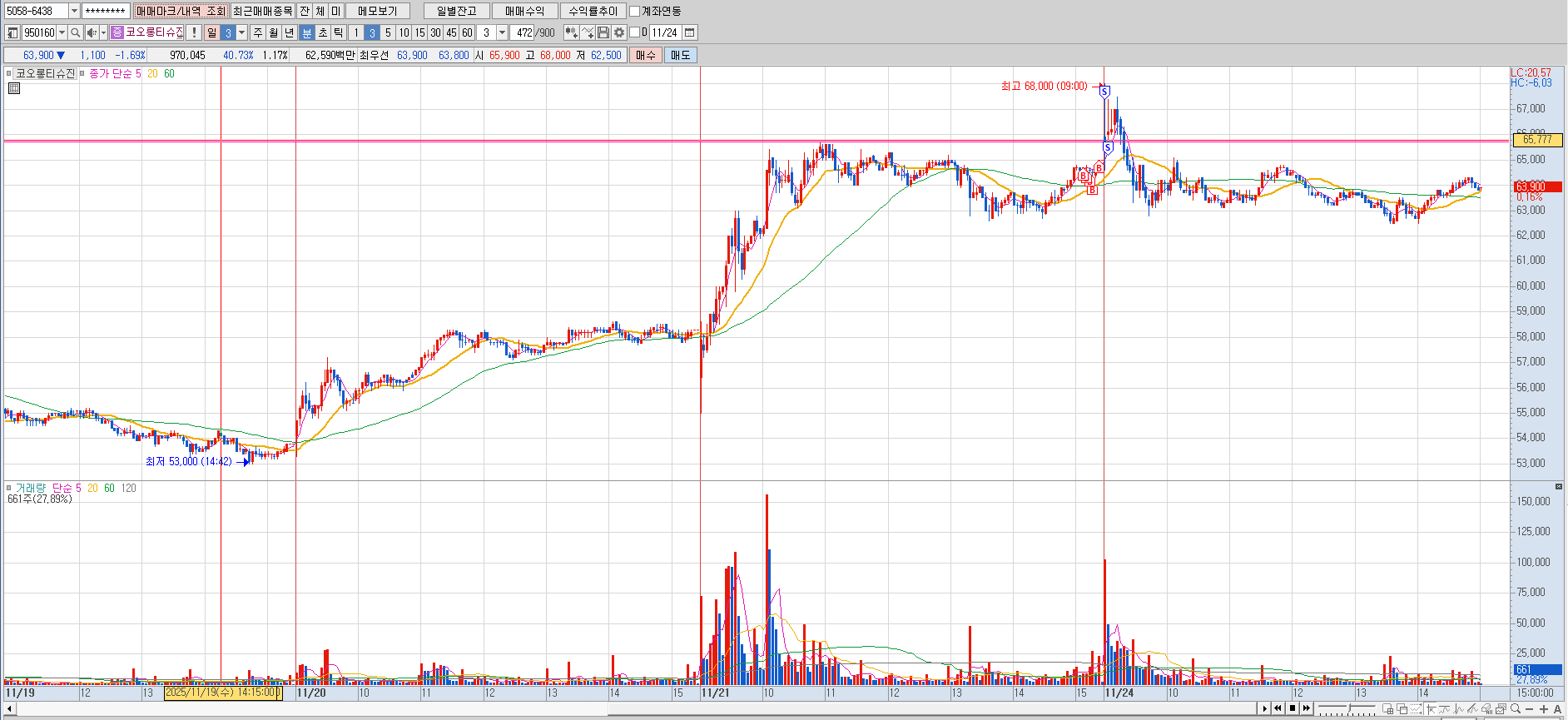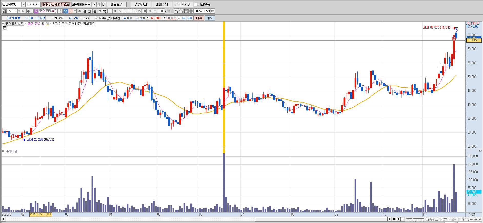 코오롱티슈진: 신고가 종목에 거래대금 상위에 포진하여 매수 진행