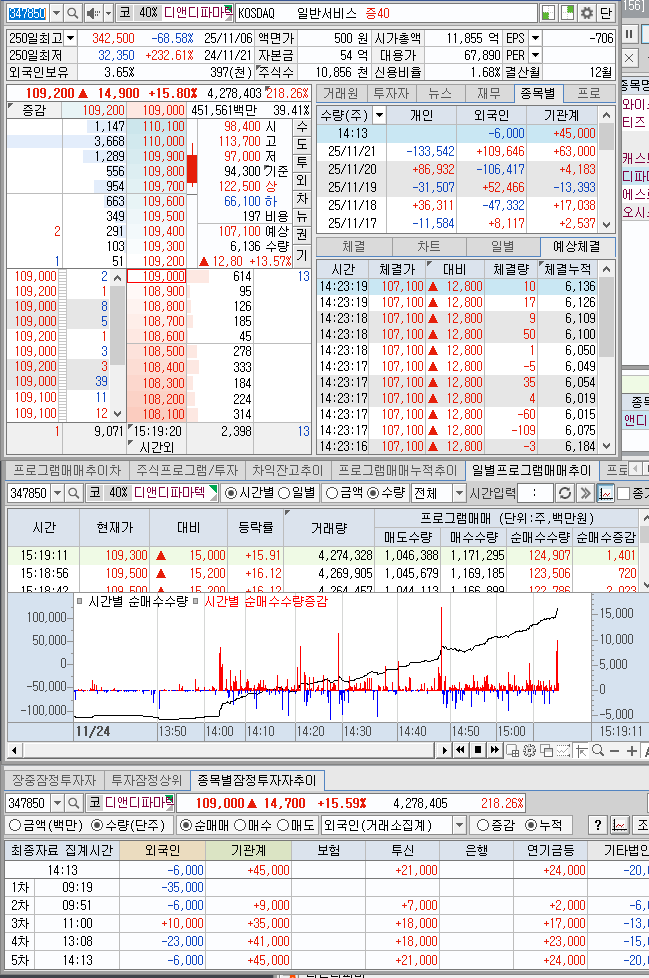 당일 기관에서도 매도세가 이어져 폭락으로 간것으로 보임