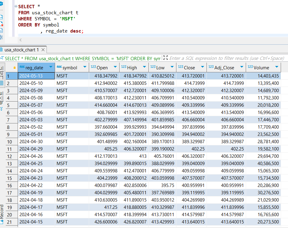 미국 주식 정보 데이터에서 분석에 필요한 일자에 관한 정보를 찾아 보겠습니다.